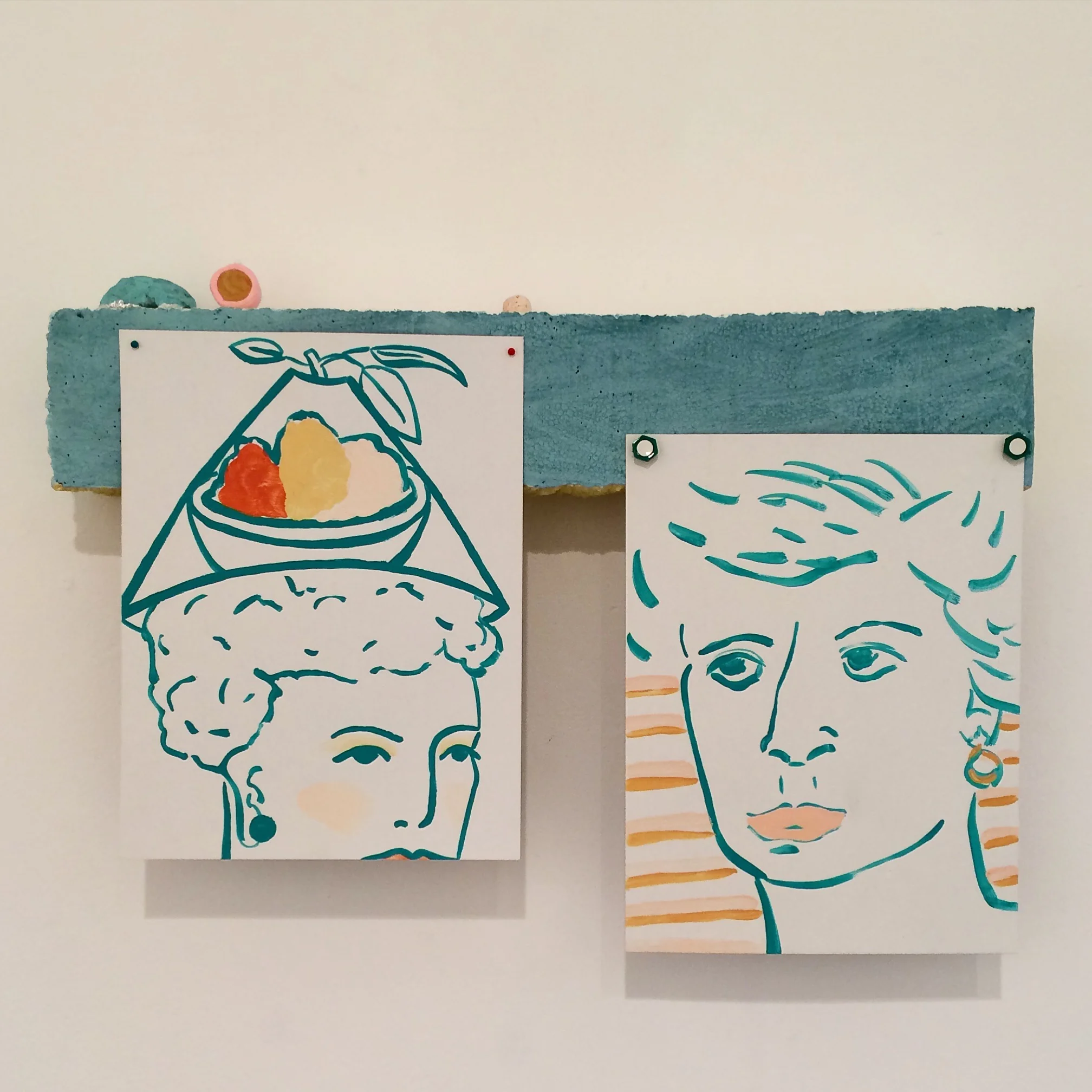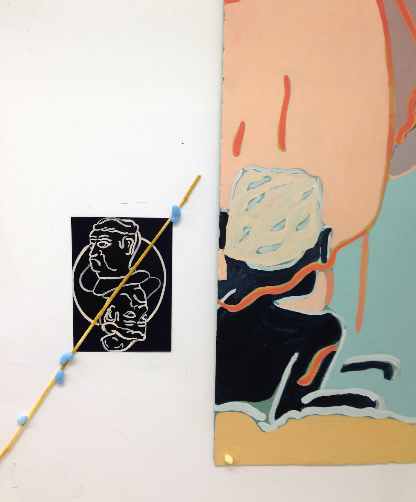 Describe your working environment/ I have all my drawings pinned up on the wall, so that i can keep my eye on them. And then one drawing finds its moment to jump out at me, it is temporarily THE ONE, the starting point for a transformation into a more physical and painterly existence. I have an array of materials to hand, as well as paints of difference colours and textures, mixed and stored in jam jars.