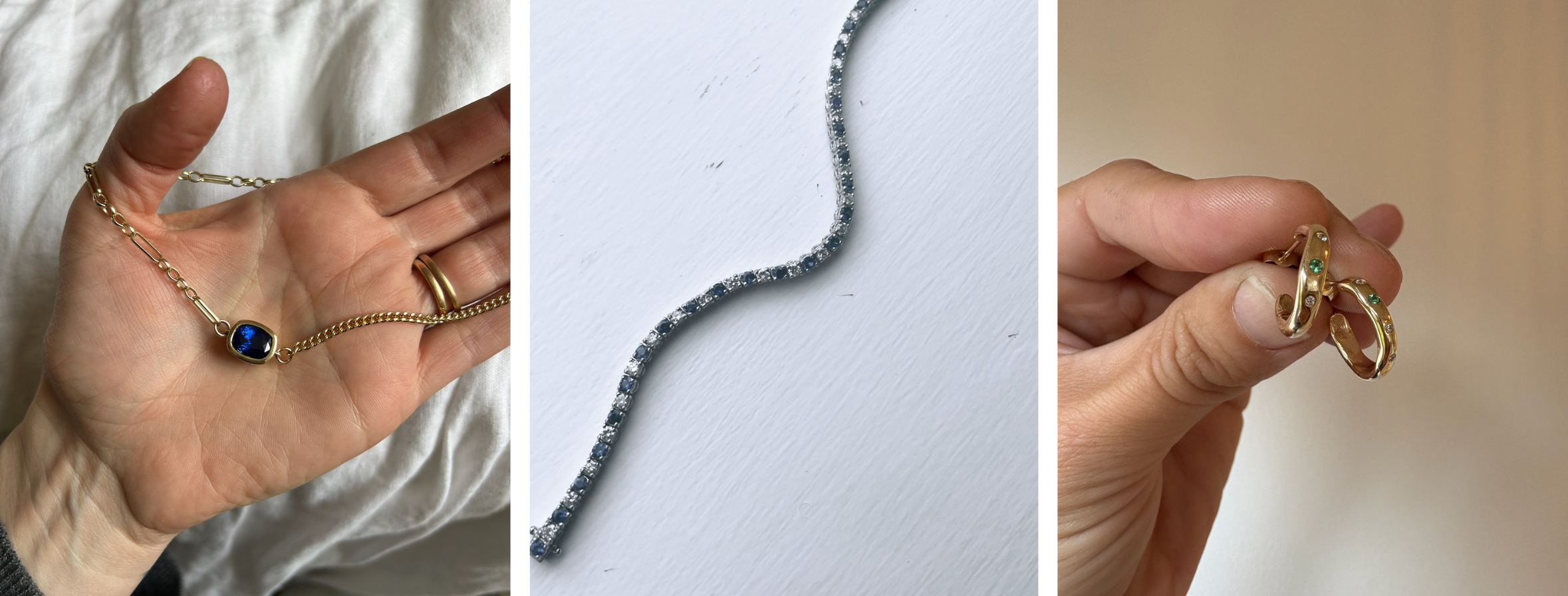 Beyond engagement rings, sapphires feature beautifully in bespoke bracelets, necklaces, and earrings. We’ve created elegant sapphire tennis bracelets, bold sapphire pendants that hold a single meaningful stone, and earrings that pair classic hues with contemporary silhouettes. If you already have sapphires or gemstones of your own, we can also design a piece around them — repurposing your existing stones into something new while preserving their story.