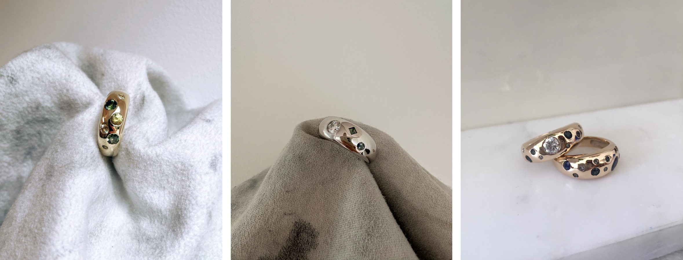 In addition to our bespoke commissions, many of our collection pieces can also be personalised with sapphires. Whether it’s a single stone added to a Full Moon Disc Necklace, or an array of colours added to a Cloud Signet Ring, the options are available to add sentimental value to your KIND jewellery.